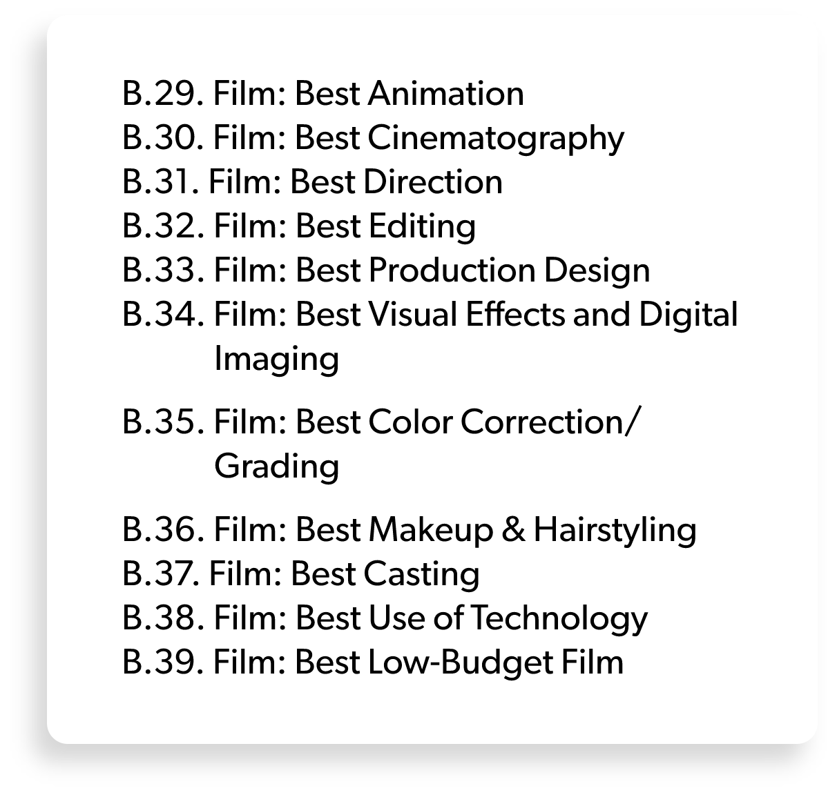Awarded to the film production house with the most number of points in the following Craft subcategories: