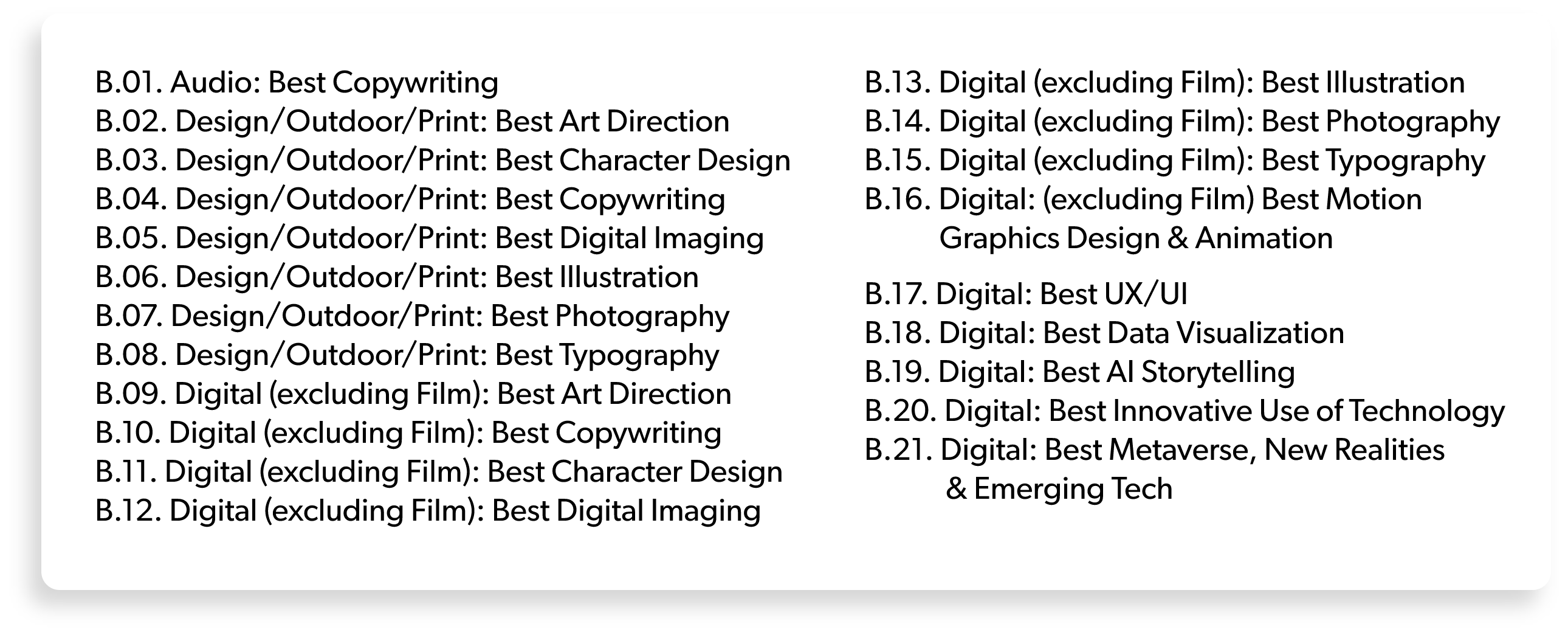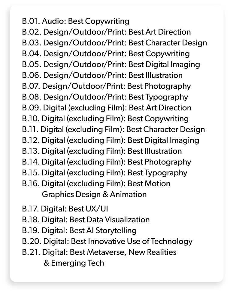 One Kidlat Sinag winner may be chosen from among the gold winners of the Creativity for Good category through unanimous vote by all Creativity for Good jury members. This award does not count in the overall award points for the winner’s agency network.